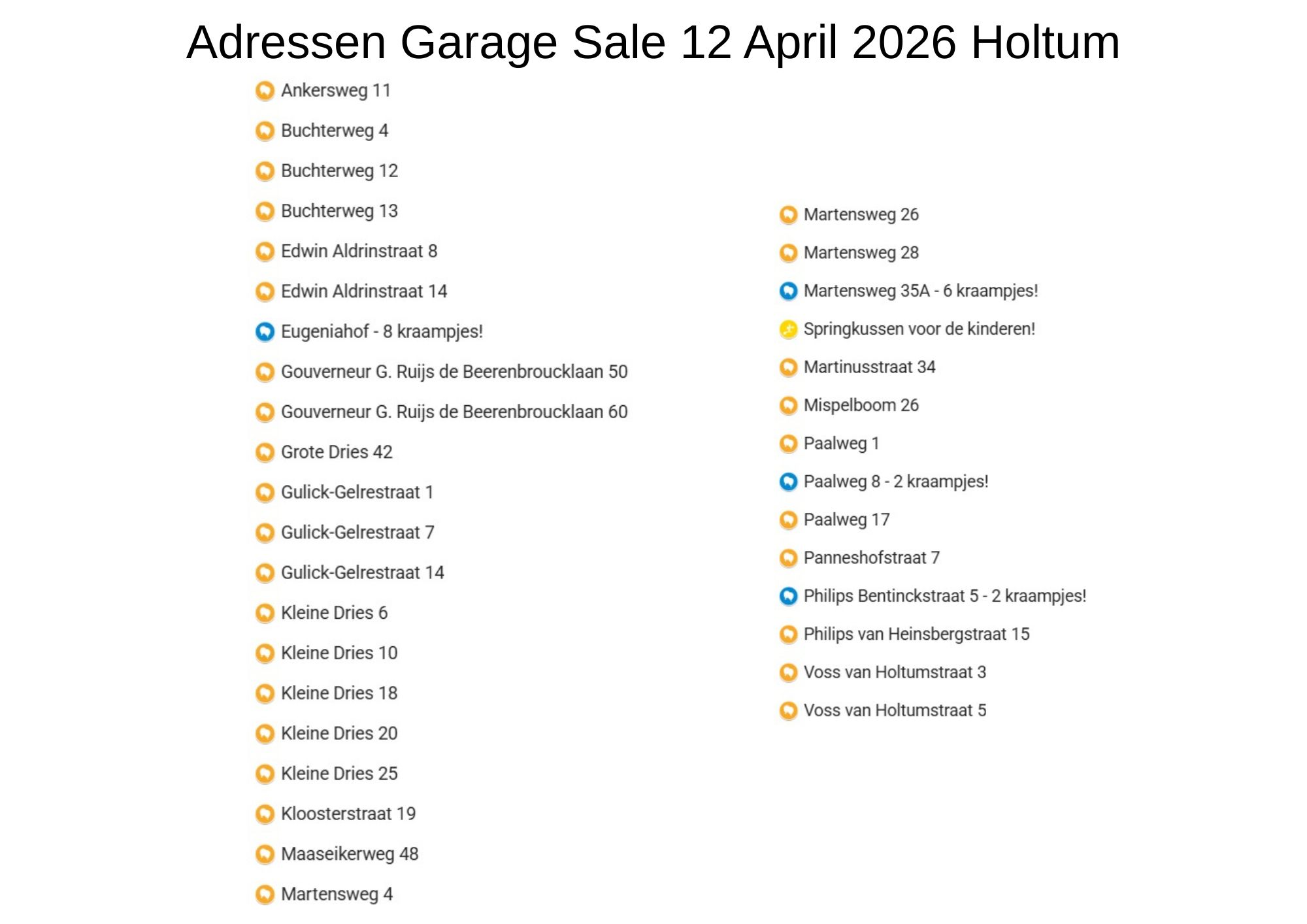 Link naar uit tips limburg: https://www.uittipslimburg.nl/evenementen/garage-sale-in-holtum-op-zondag-12-april-holtum/